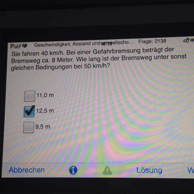 Wie verändert sich der Bremsweg Zu welchem Zweck darf die Hupe. Sie fahren 100kmh und haben 1 Sekunde. Der Testzugang bietet Ihnen eine Auswahl von Führerscheinfragen.